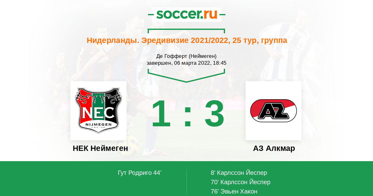 Протокол матча НЕК Неймеген против АЗ Алкмар