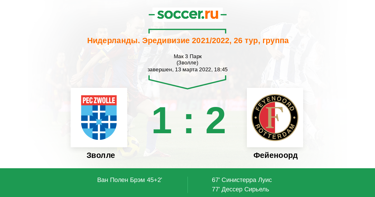 Протокол матча Зволле против Фейеноорд