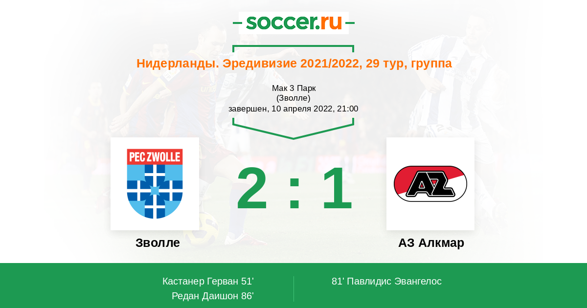 Протокол матча Зволле против АЗ Алкмар