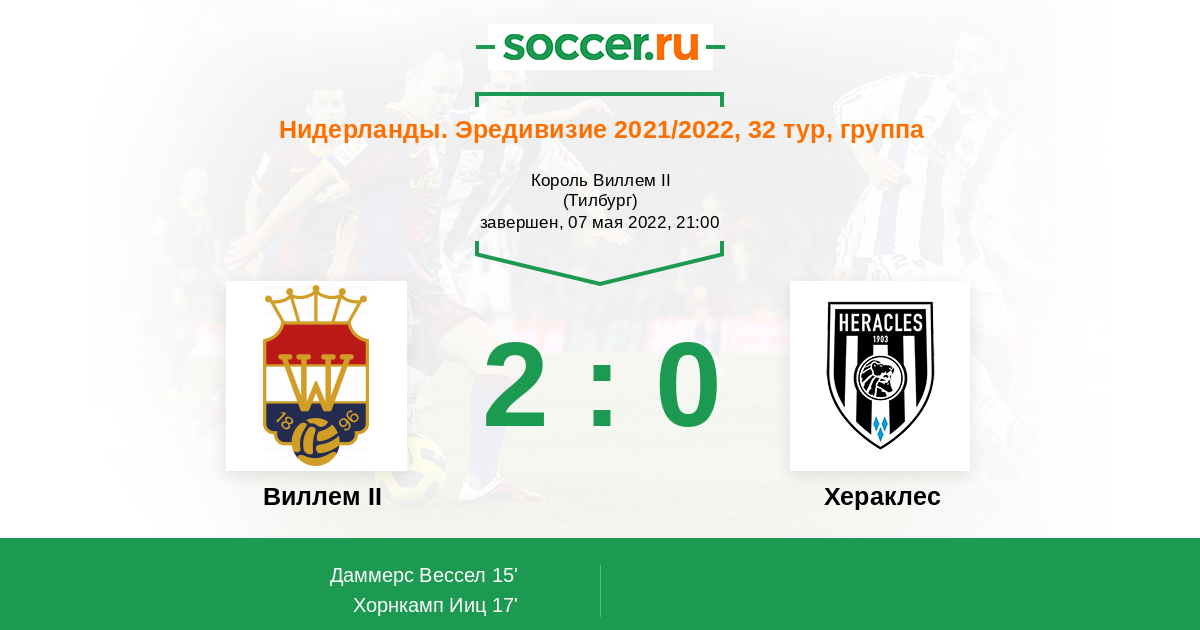 Протокол матча Виллем II против Хераклес