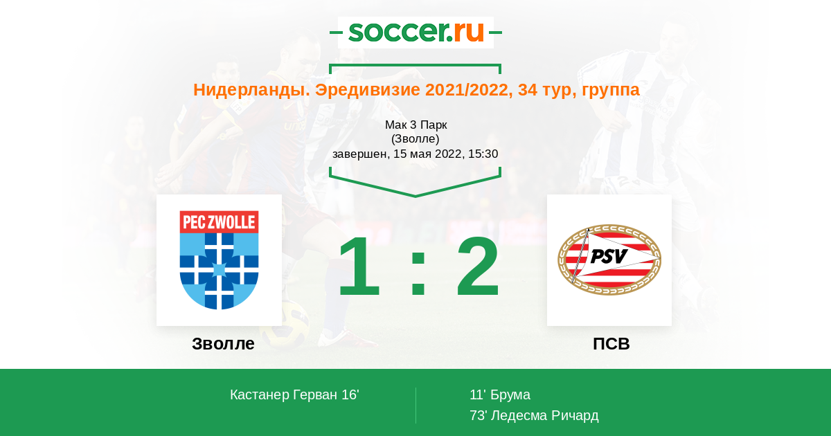Протокол матча Зволле против ПСВ