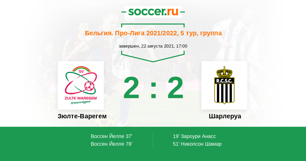 Протокол матча Зюлте-Варегем против Шарлеруа