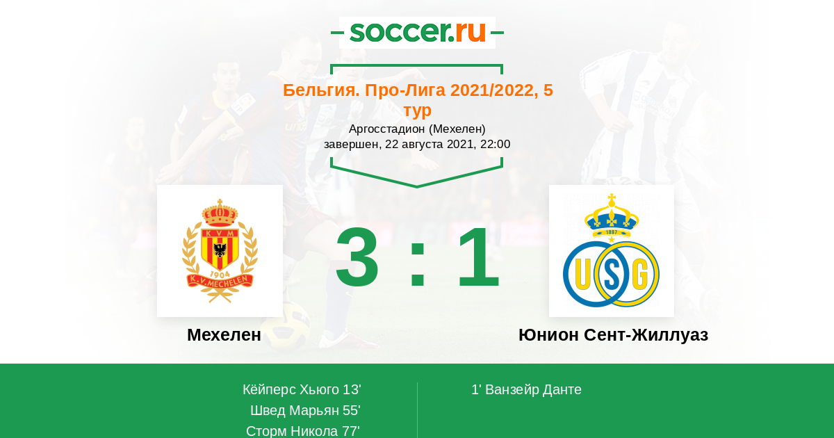 Протокол матча Мехелен против Юнион Сент-Жиллуаз