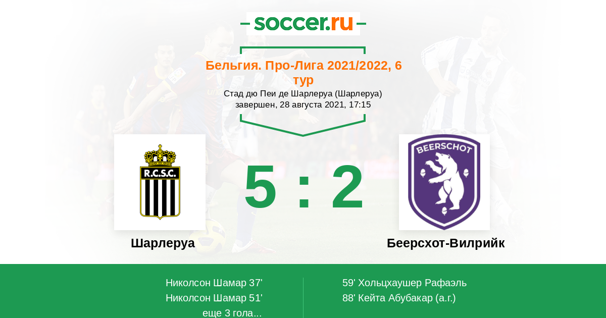 Протокол матча Шарлеруа против Беерсхот-Вилрийк