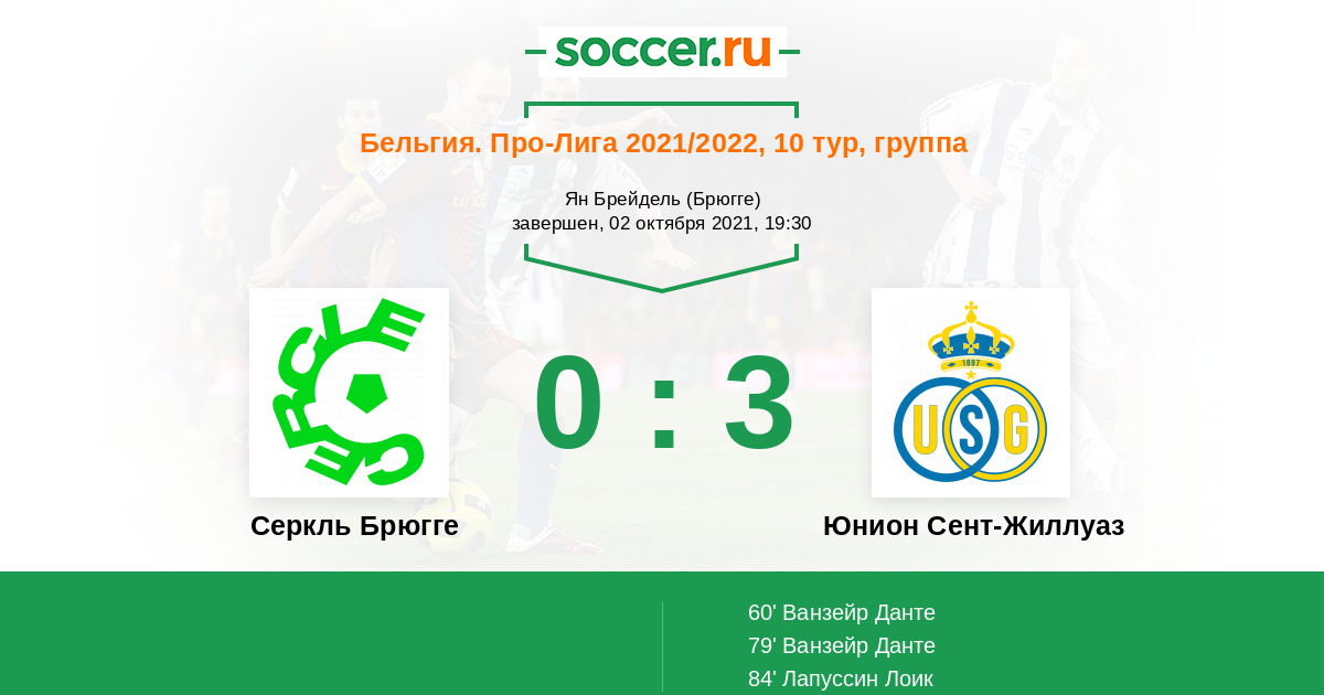 Протокол матча Серкль Брюгге против Юнион Сент-Жиллуаз