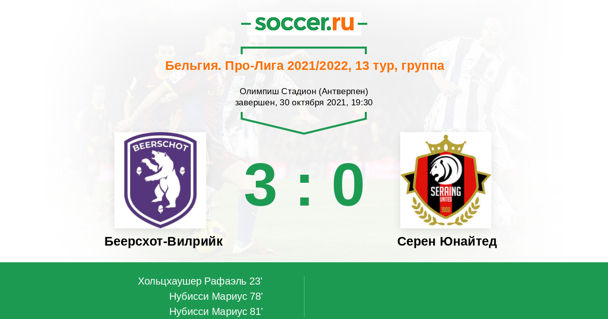 Протокол матча Беерсхот-Вилрийк против Серен Юнайтед