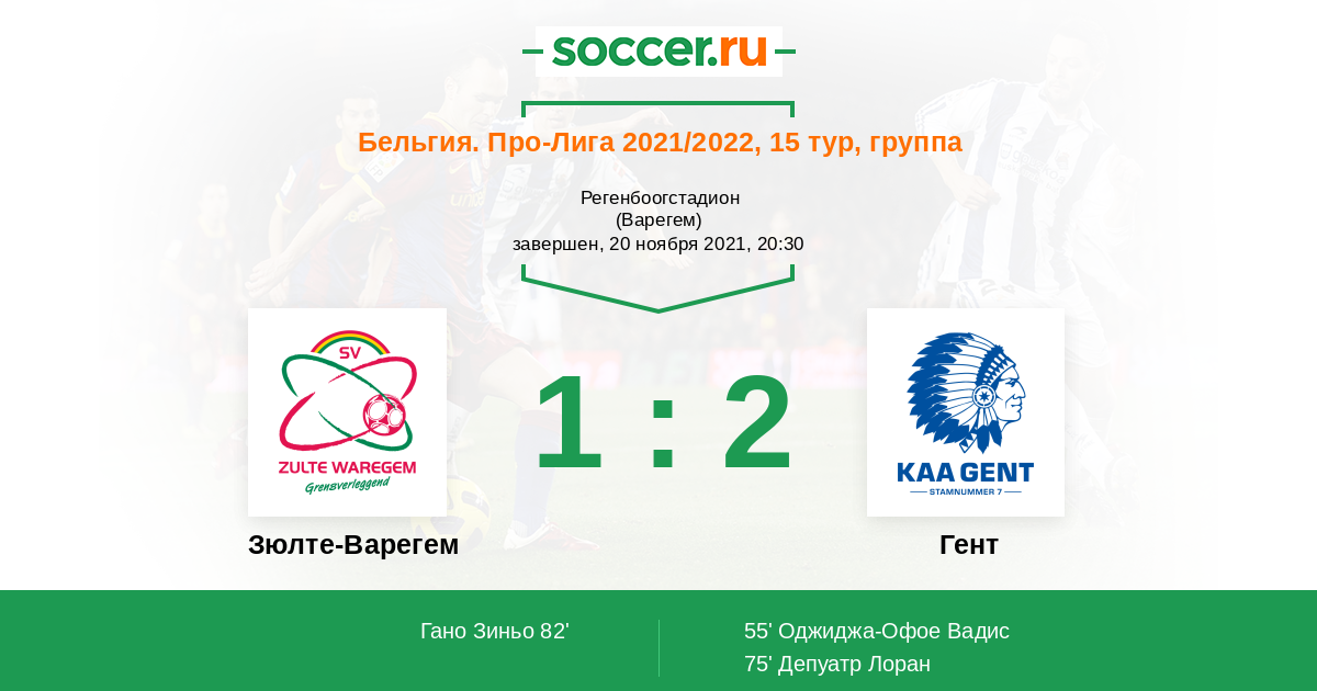 Протокол матча Зюлте-Варегем против Гент
