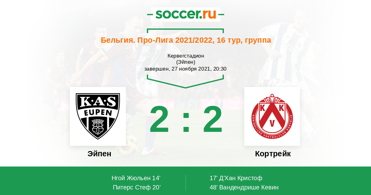 Протокол матча Эйпен против Кортрейк