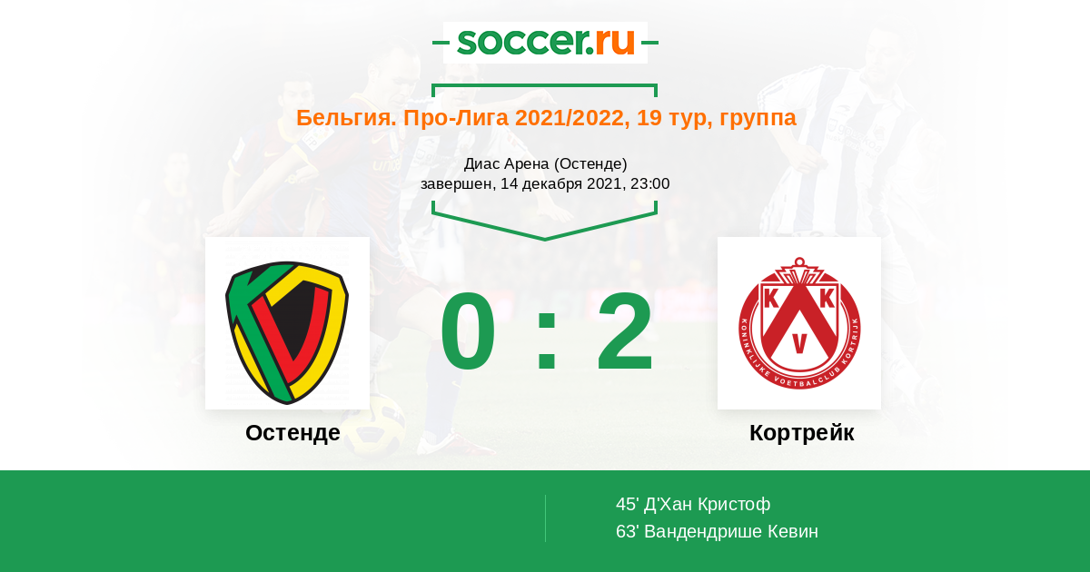 Протокол матча Остенде против Кортрейк