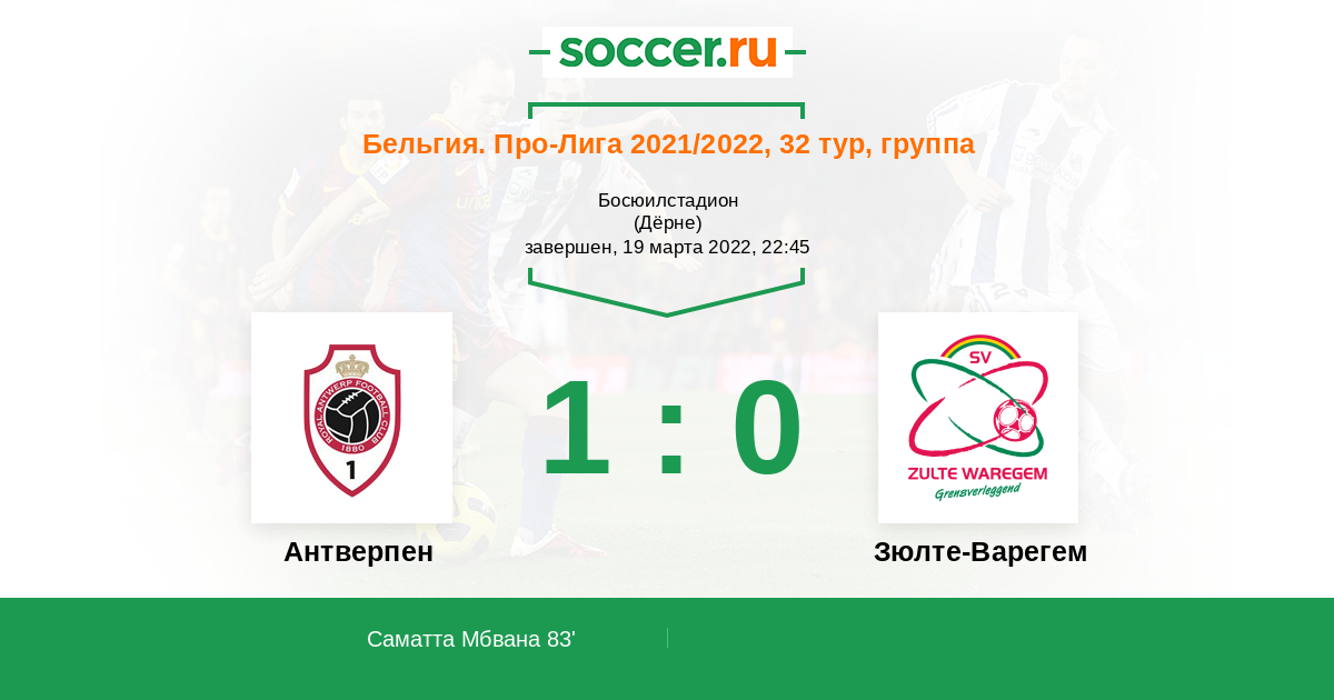 Протокол матча Антверпен против Зюлте-Варегем