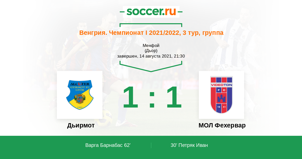 Протокол матча Дьирмот против МОЛ Фехервар