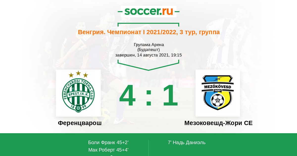 Протокол матча Ференцварош против Мезоковешд-Жори СЕ