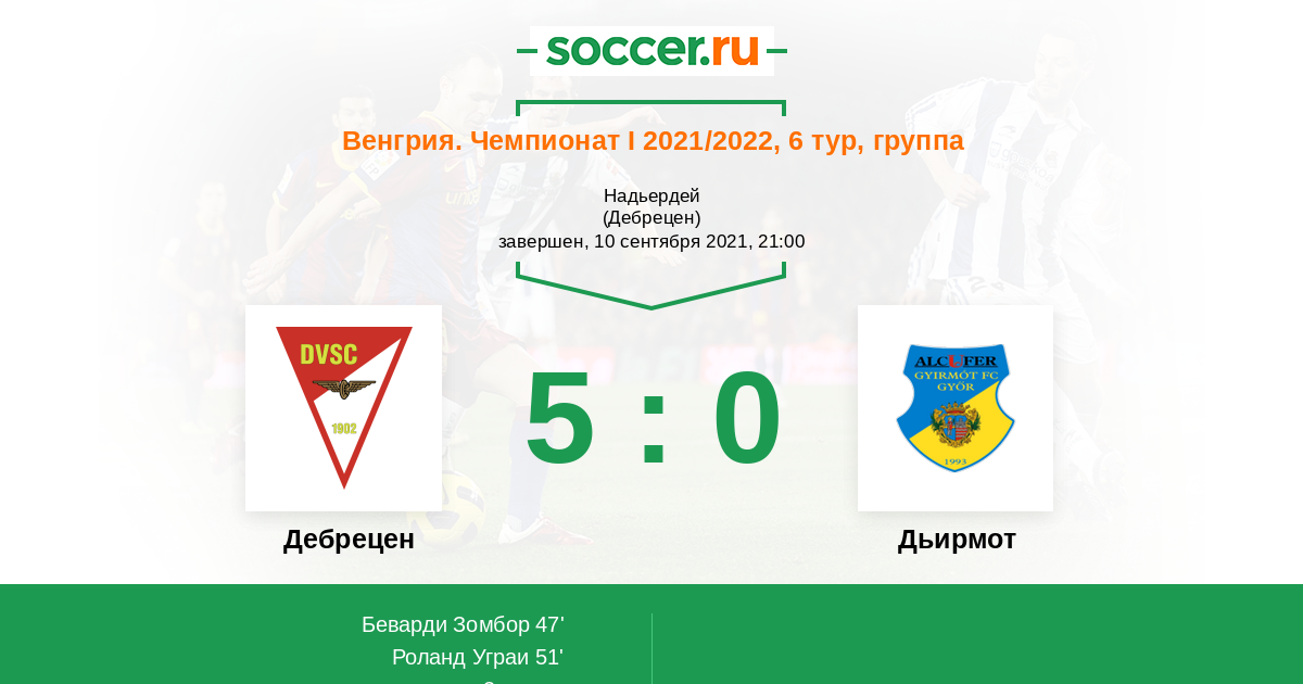 Протокол матча Дебрецен против Дьирмот