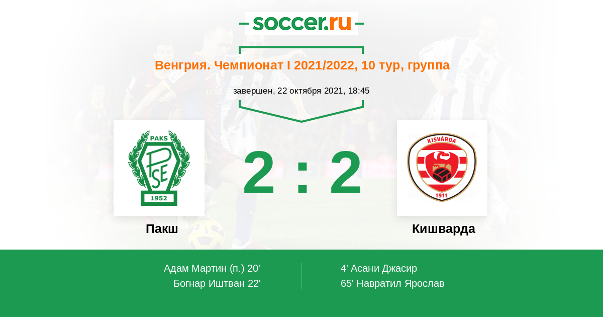 Протокол матча Пакш против Кишварда