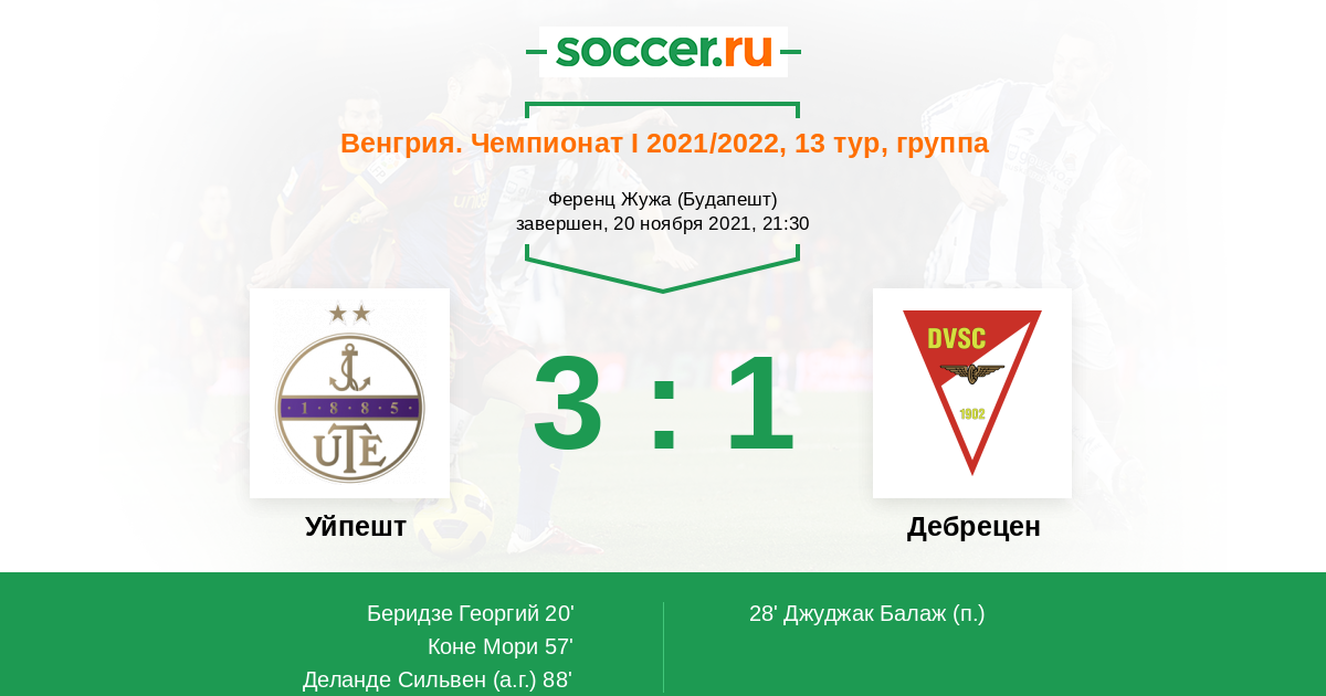 Протокол матча Уйпешт против Дебрецен