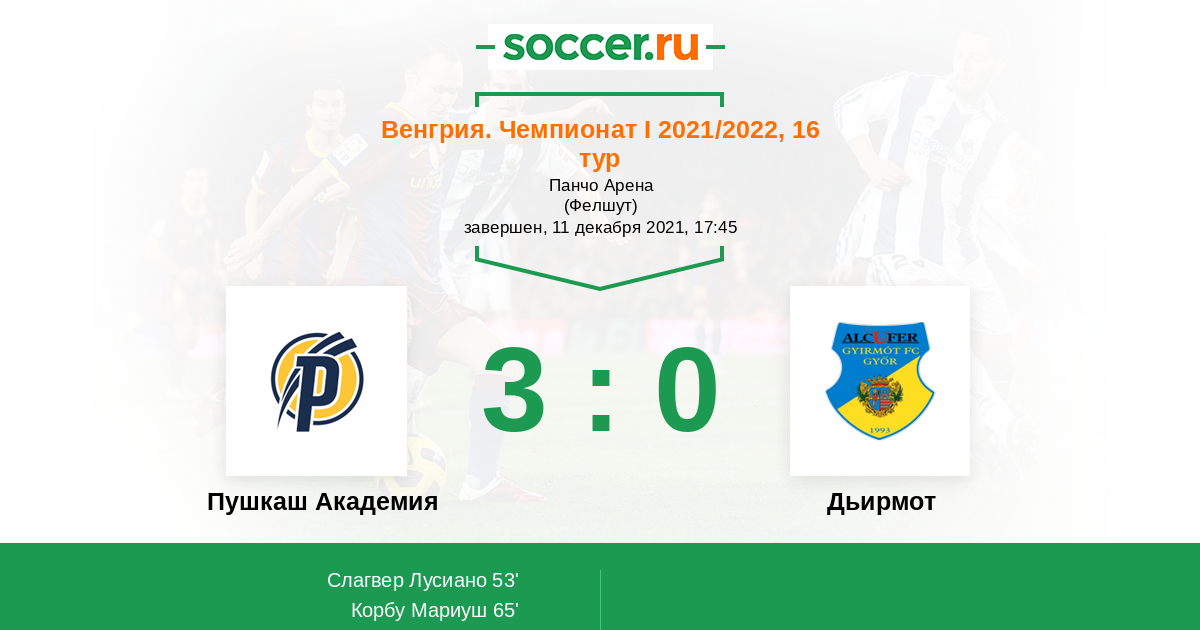 Протокол матча Пушкаш Академия против Дьирмот