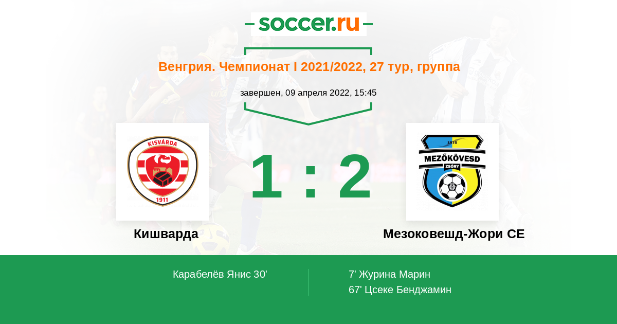 Протокол матча Кишварда против Мезоковешд-Жори СЕ