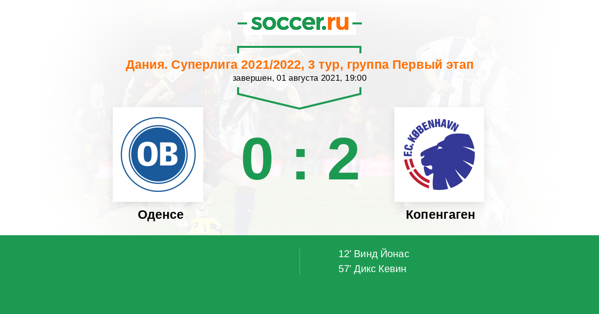 57' (0:2) Дикс Кевин (2) (Кристансен Виктор (34))