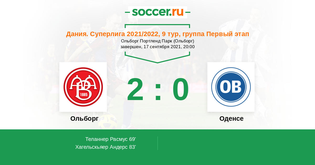 Протокол матча Ольборг против Оденсе