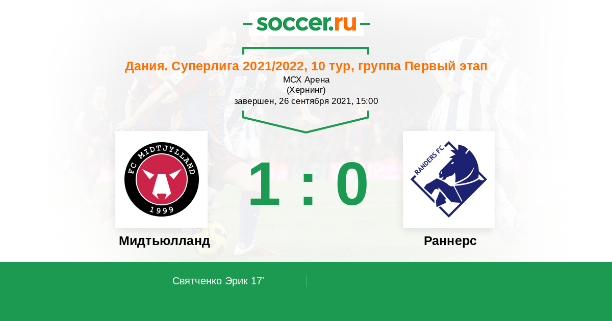 Протокол матча Мидтьюлланд против Раннерс
