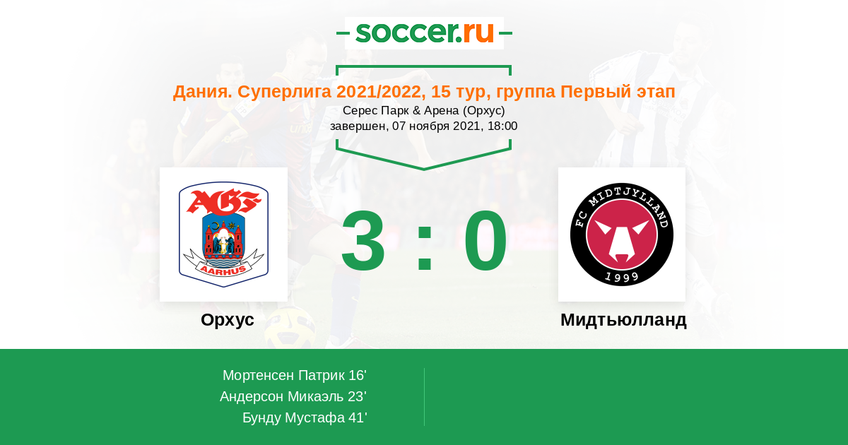 16' (1:0) Мортенсен Патрик (9) (Брандхоф Фредерик (29))