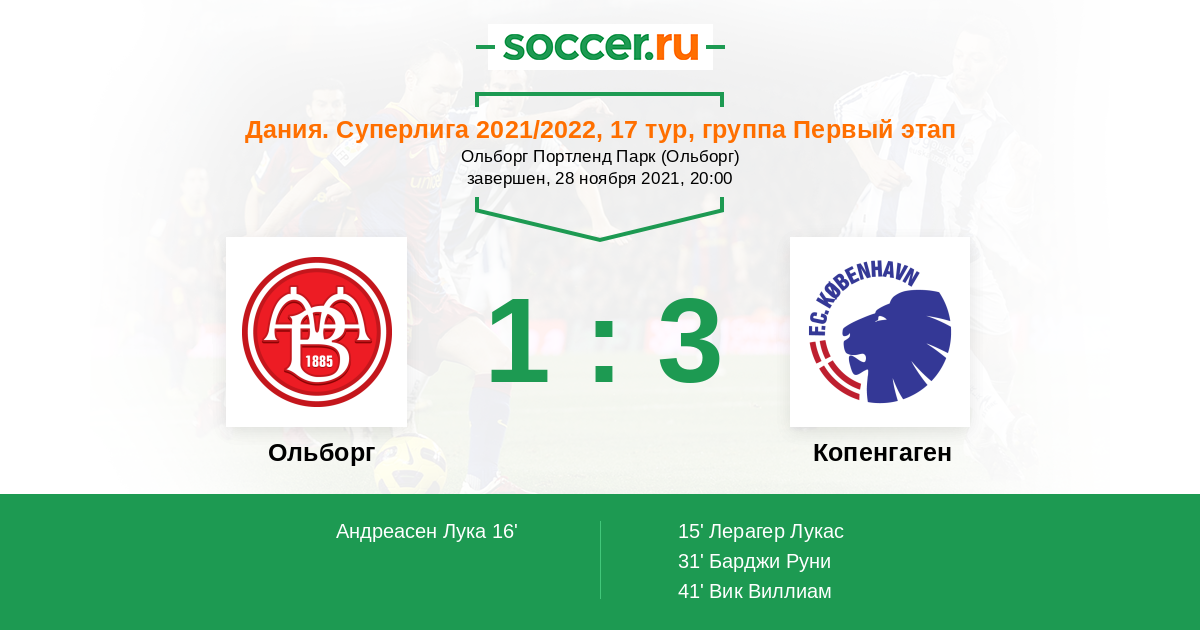 Протокол матча Ольборг против Копенгаген