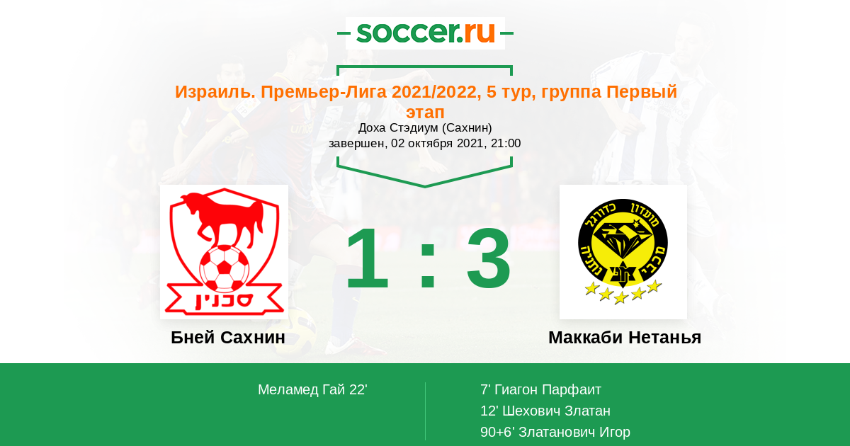 Протокол матча Бней Сахнин против Маккаби Нетанья