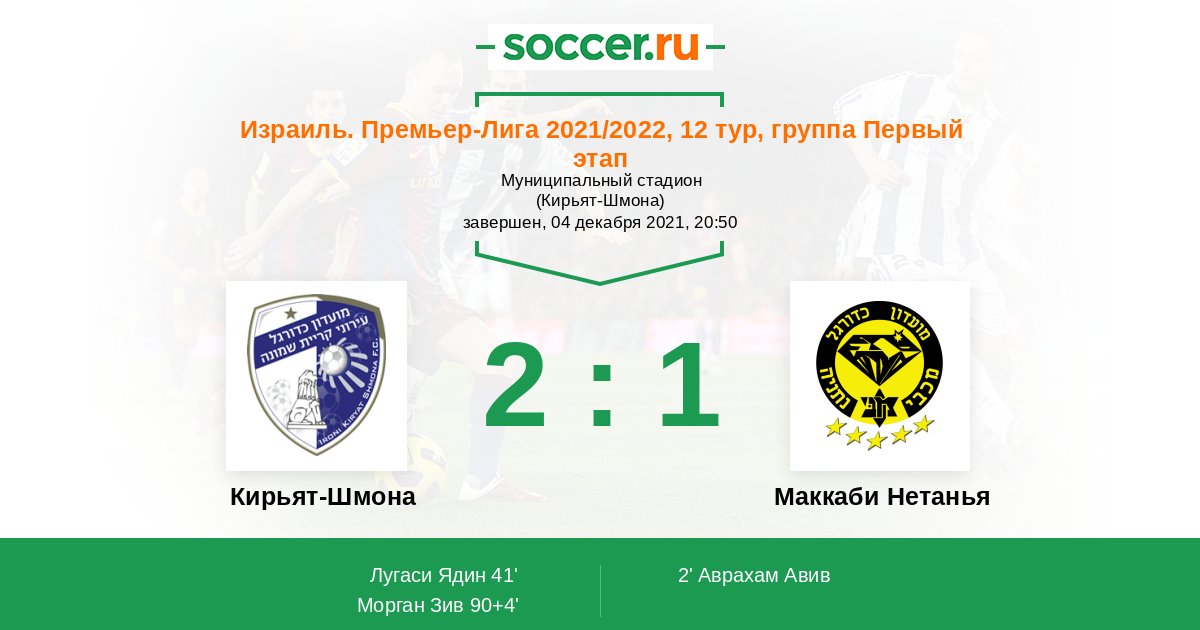 Протокол матча Кирьят-Шмона против Маккаби Нетанья