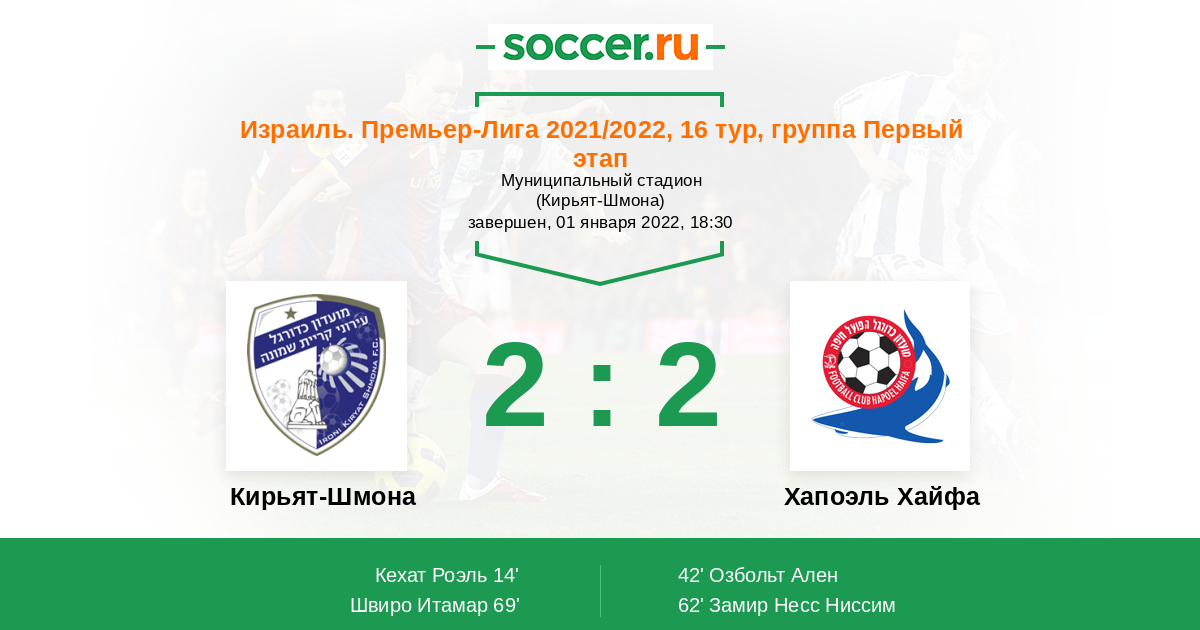 Протокол матча Кирьят-Шмона против Хапоэль Хайфа