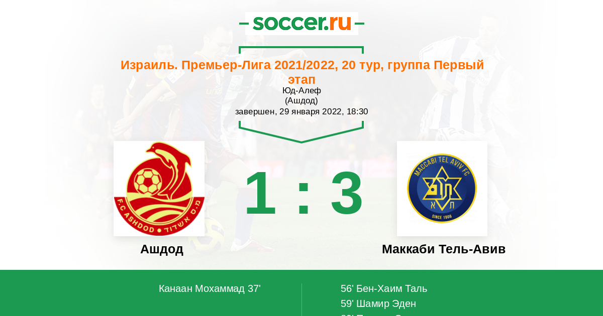 Протокол матча Ашдод против Маккаби Тель-Авив
