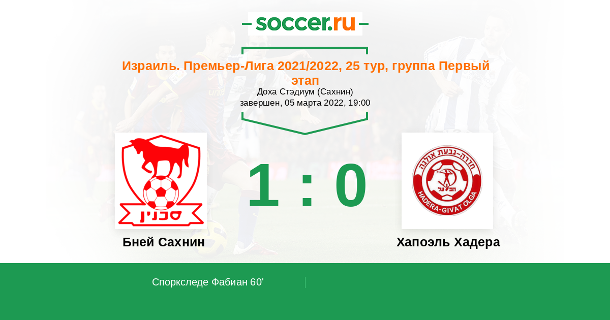 Протокол матча Бней Сахнин против Хапоэль Хадера