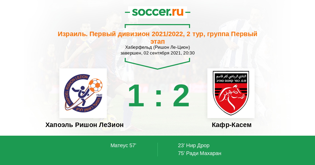 Протокол матча Хапоэль Ришон ЛеЗион против Кафр-Касем