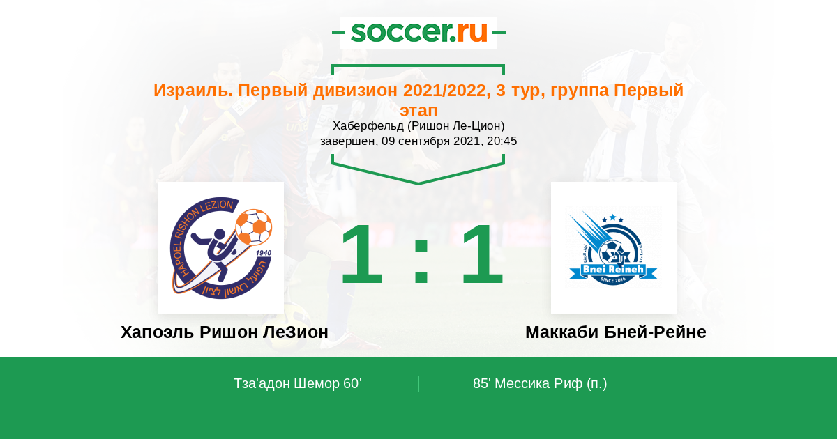Протокол матча Хапоэль Ришон ЛеЗион против Маккаби Бней-Рейне