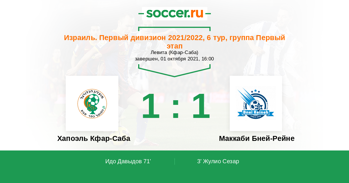 Протокол матча Хапоэль Кфар-Саба против Маккаби Бней-Рейне