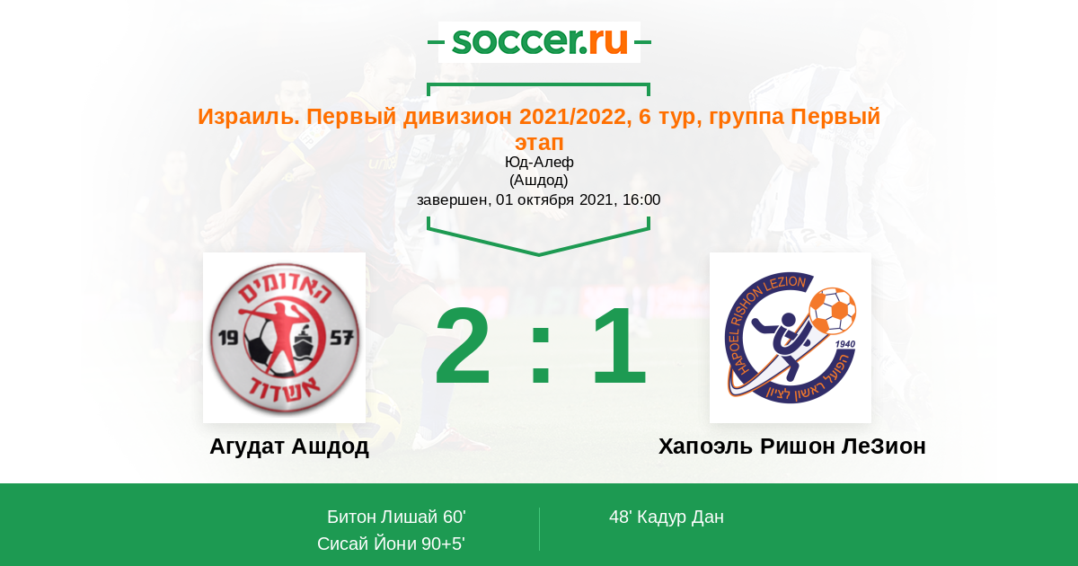 Протокол матча Агудат Ашдод против Хапоэль Ришон ЛеЗион