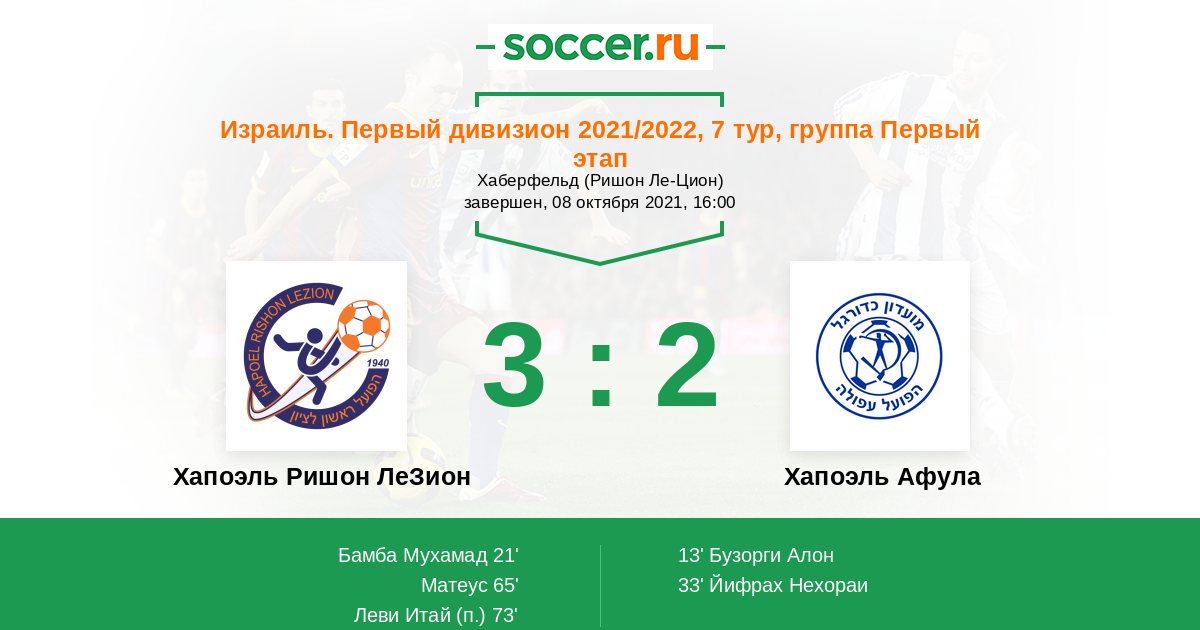 Протокол матча Хапоэль Ришон ЛеЗион против Хапоэль Афула
