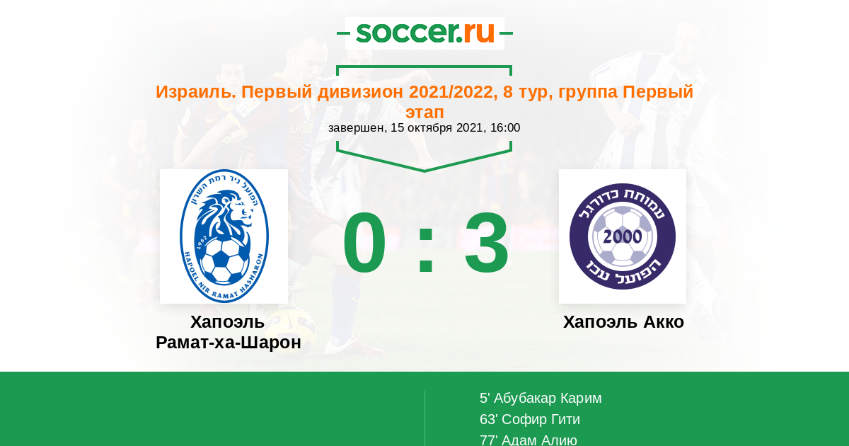 Протокол матча Хапоэль Рамат-ха-Шарон против Хапоэль Акко