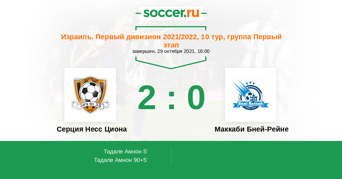 Протокол матча Серция Несс Циона против Маккаби Бней-Рейне
