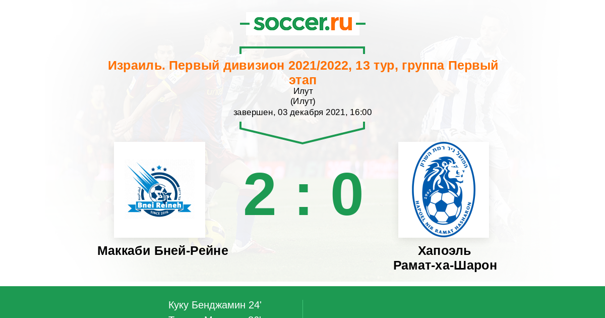 Протокол матча Маккаби Бней-Рейне против Хапоэль Рамат-ха-Шарон
