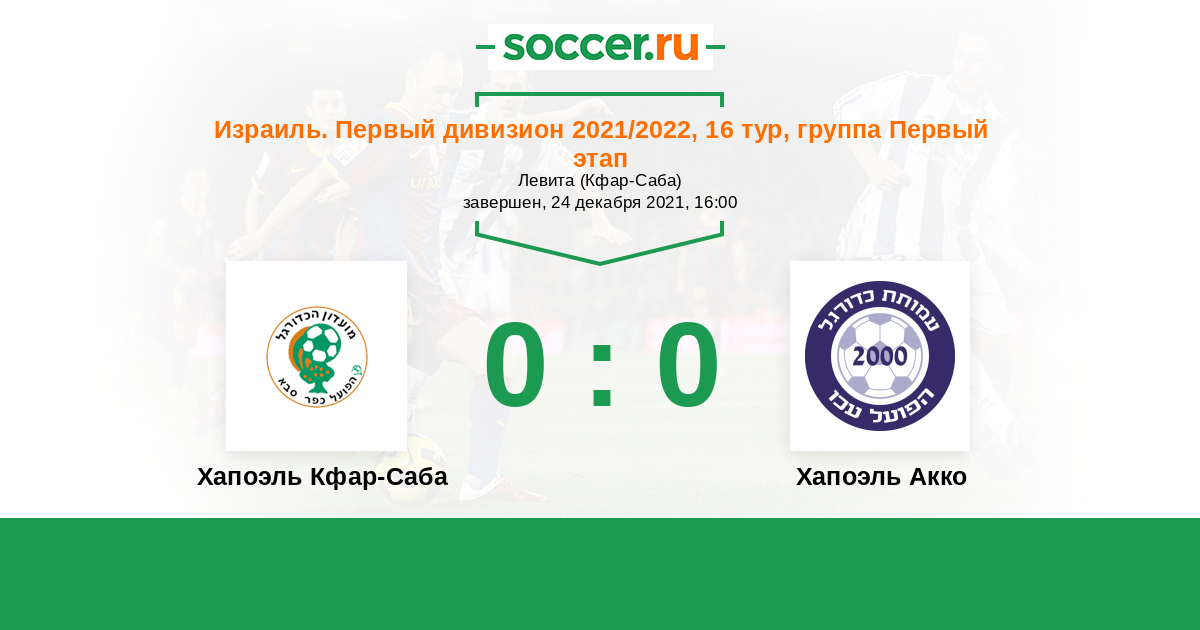 Протокол матча Хапоэль Кфар-Саба против Хапоэль Акко