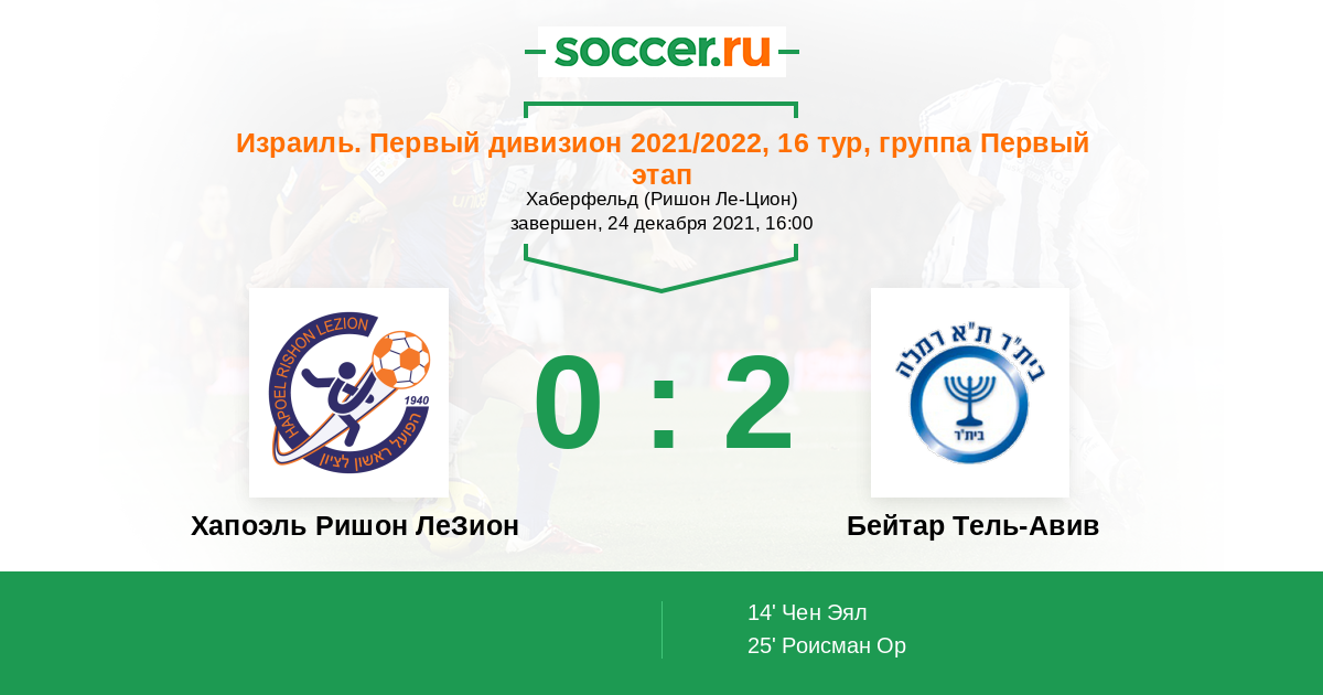 Протокол матча Хапоэль Ришон ЛеЗион против Бейтар Тель-Авив