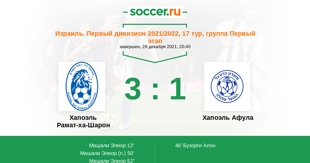 Протокол матча Хапоэль Рамат-ха-Шарон против Хапоэль Афула