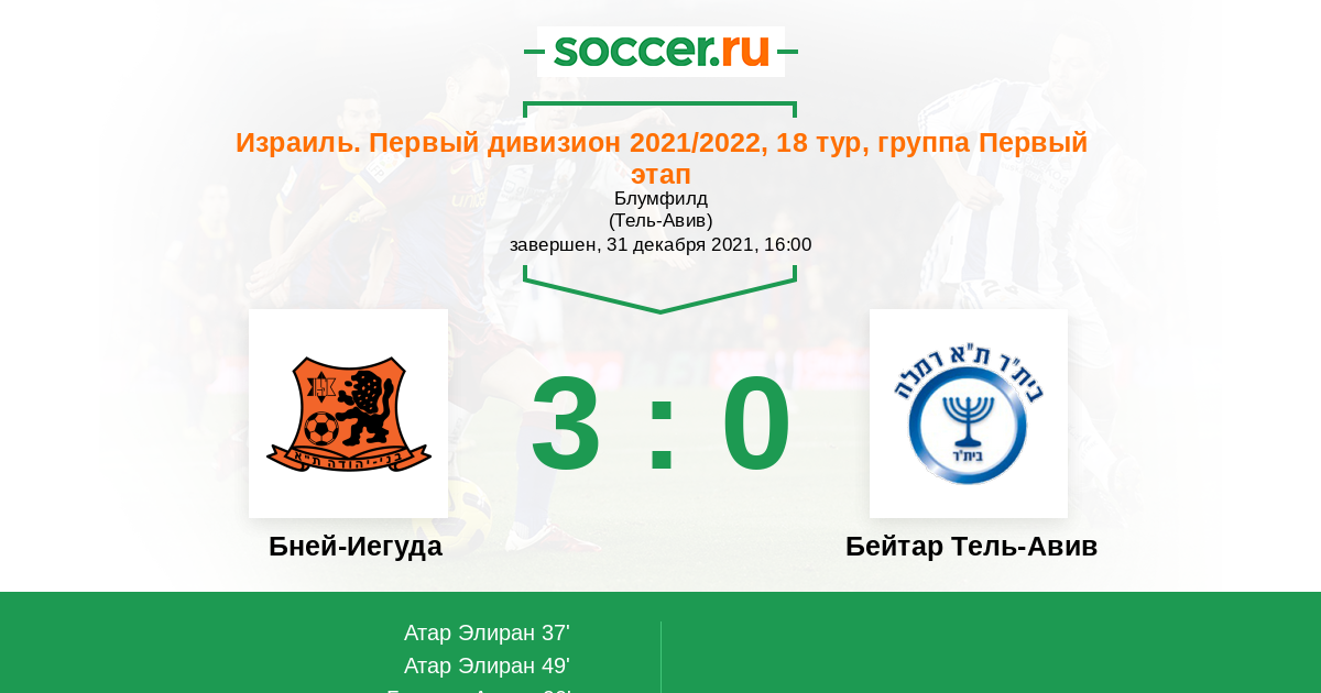 Протокол матча Бней-Иегуда против Бейтар Тель-Авив