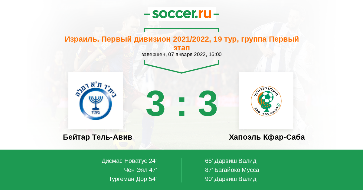 Протокол матча Бейтар Тель-Авив против Хапоэль Кфар-Саба