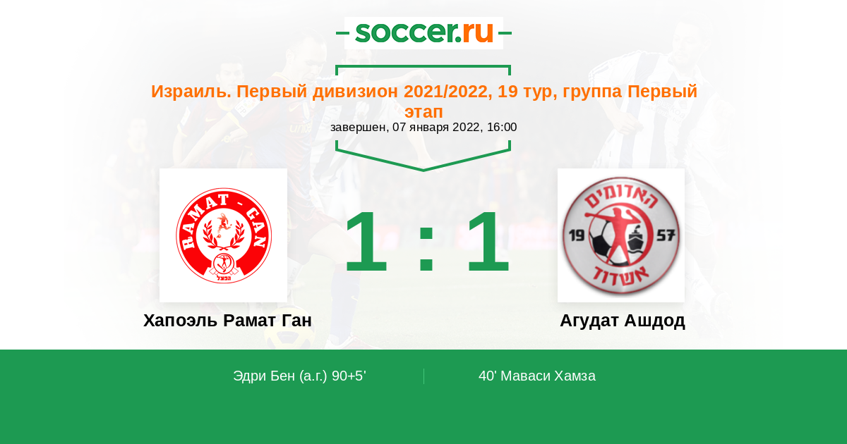 Протокол матча Хапоэль Рамат Ган против Агудат Ашдод