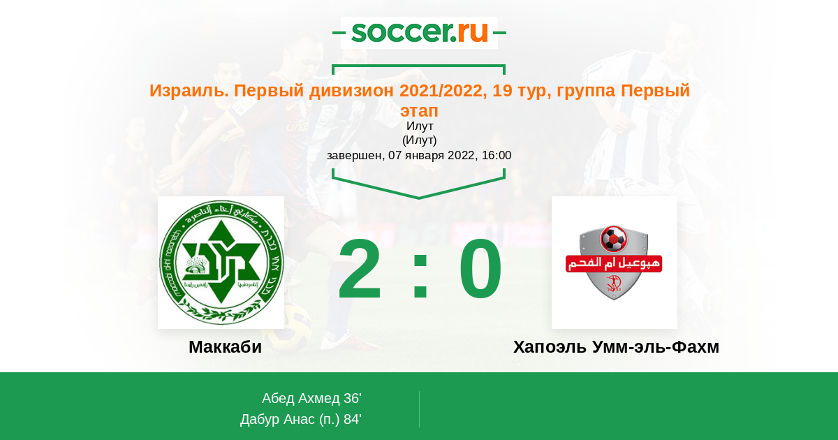 Протокол матча Маккаби против Хапоэль Умм-эль-Фахм