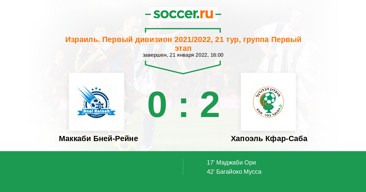 Протокол матча Маккаби Бней-Рейне против Хапоэль Кфар-Саба