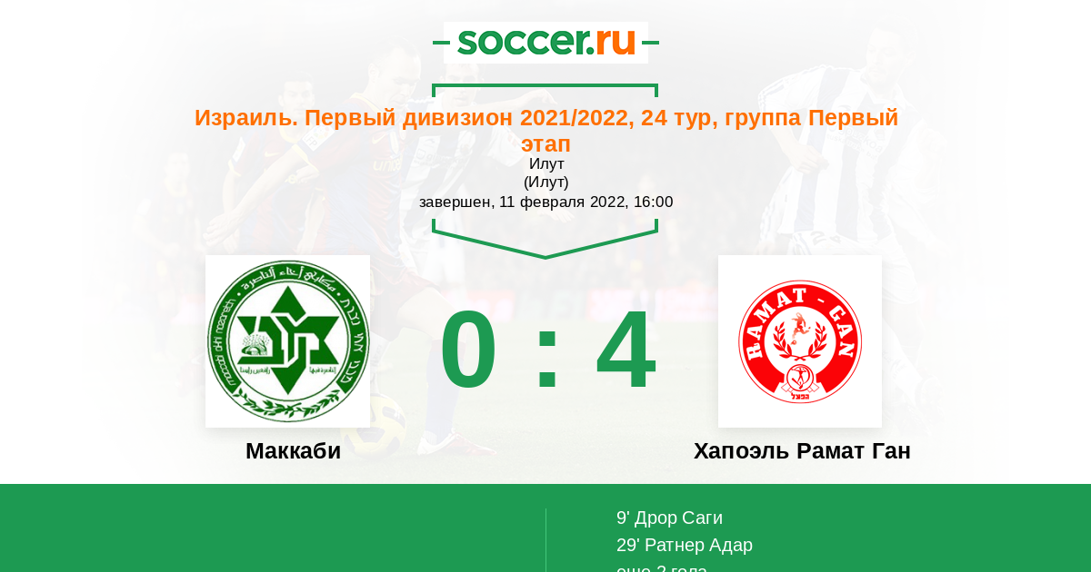 Протокол матча Маккаби против Хапоэль Рамат Ган