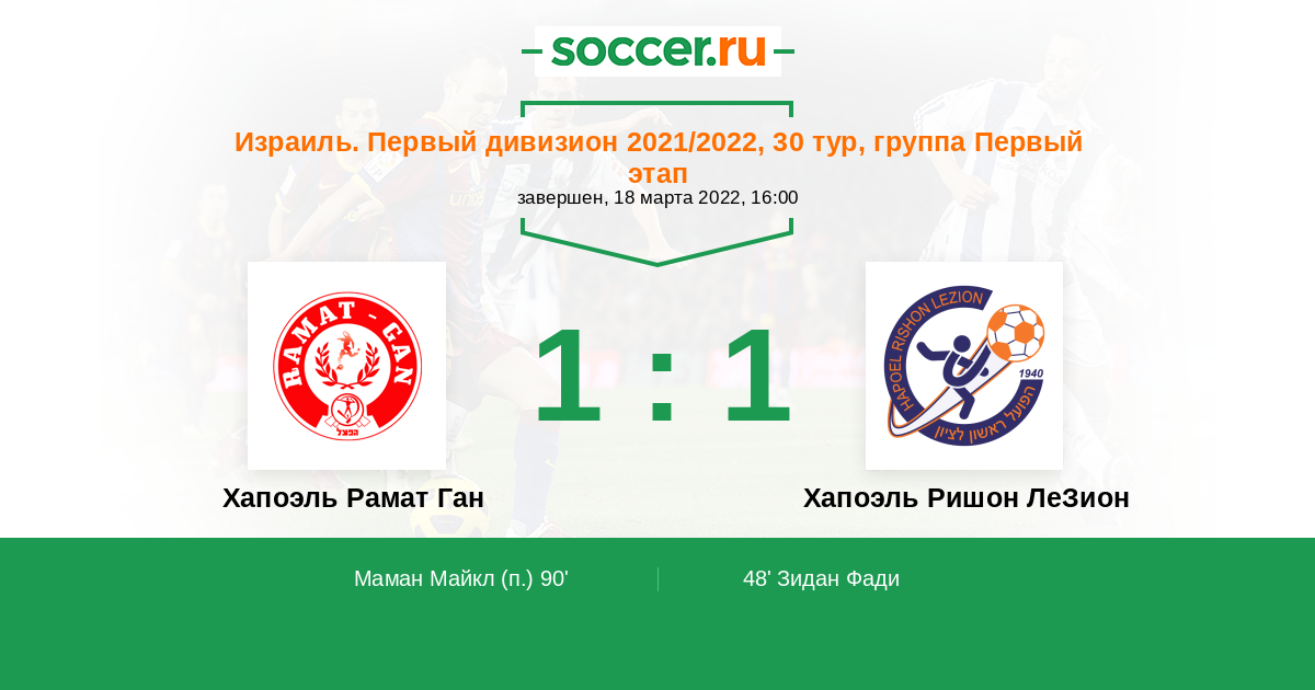 Протокол матча Хапоэль Рамат Ган против Хапоэль Ришон ЛеЗион