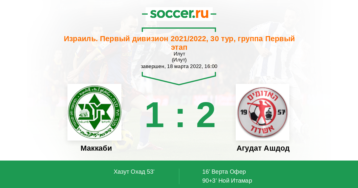 Протокол матча Маккаби против Агудат Ашдод